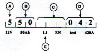D Marş sırasında çekilebilecek maksimum akım. Bu değer marş motorunuzla uyumlu olmalıdır. (Örnek: 420 A akım 042 gösterilir.)